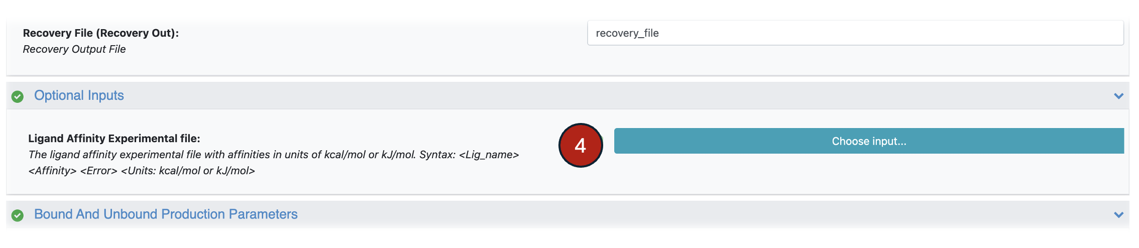 Optional, but recommended for all retrospective studies: For the Experimental Affinity parameter, provide a file with known experimental binding affinity values for the ligands.