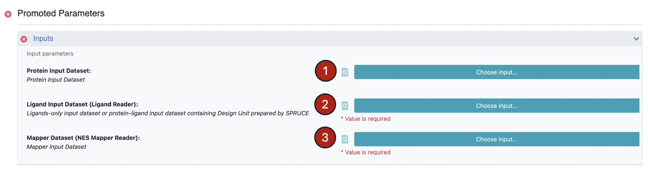 - A single dataset containing at least two ligand records.Ligands must be preposed in the receptor’s binding site. Ligands must be small molecules.Because this floe computes relative binding free energies using a chimeric common core, all ligands must belong to the same congeneric series and share a conserved binding mode.