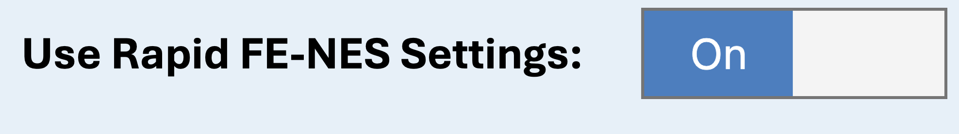 To run Rapid FE-NES, you must set the ‘Use Rapid FE-NES Settings’ toggle switch to ‘On’.