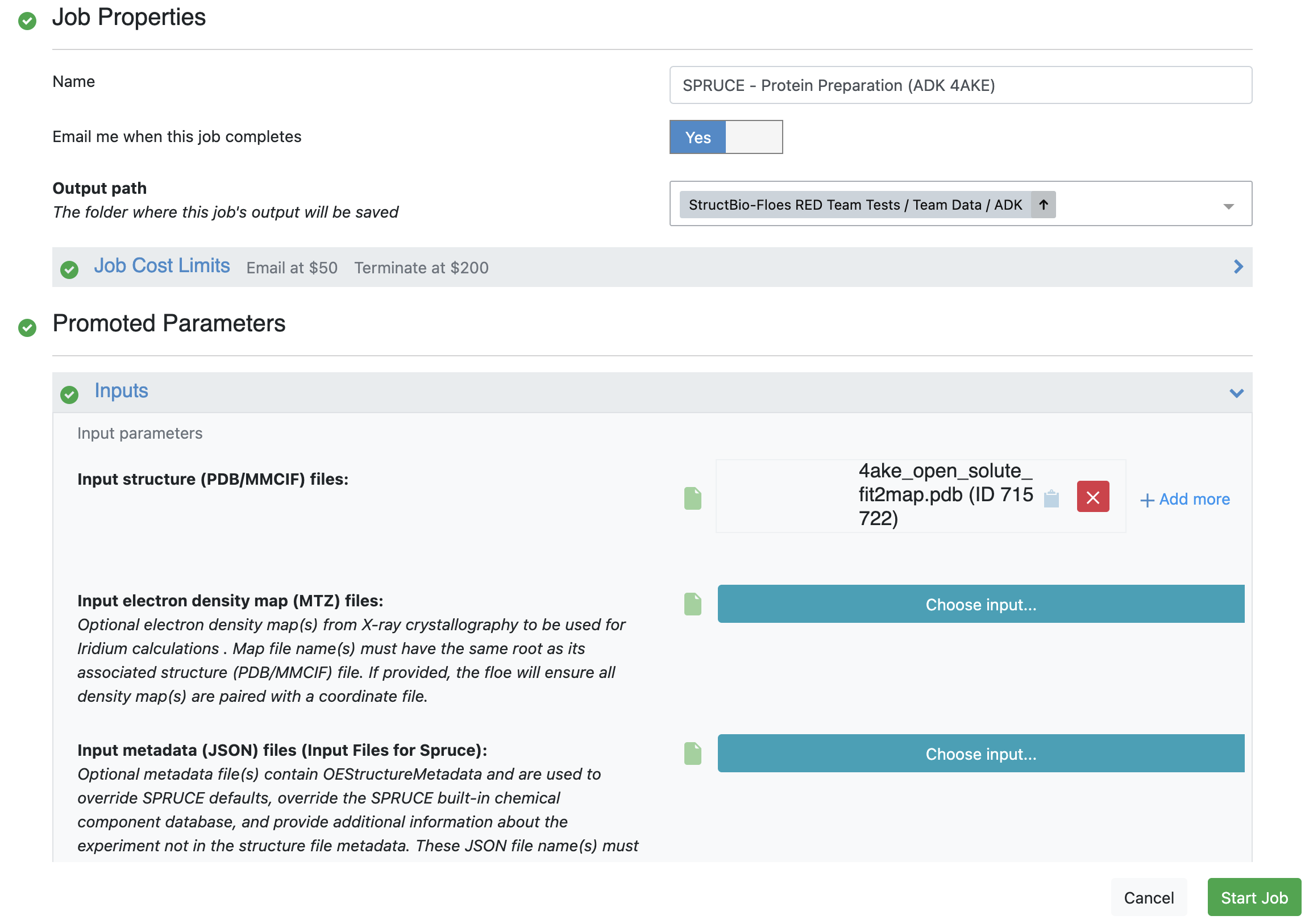 Figure 1. User inputs for the SPRUCE - Protein Preparation Floe.