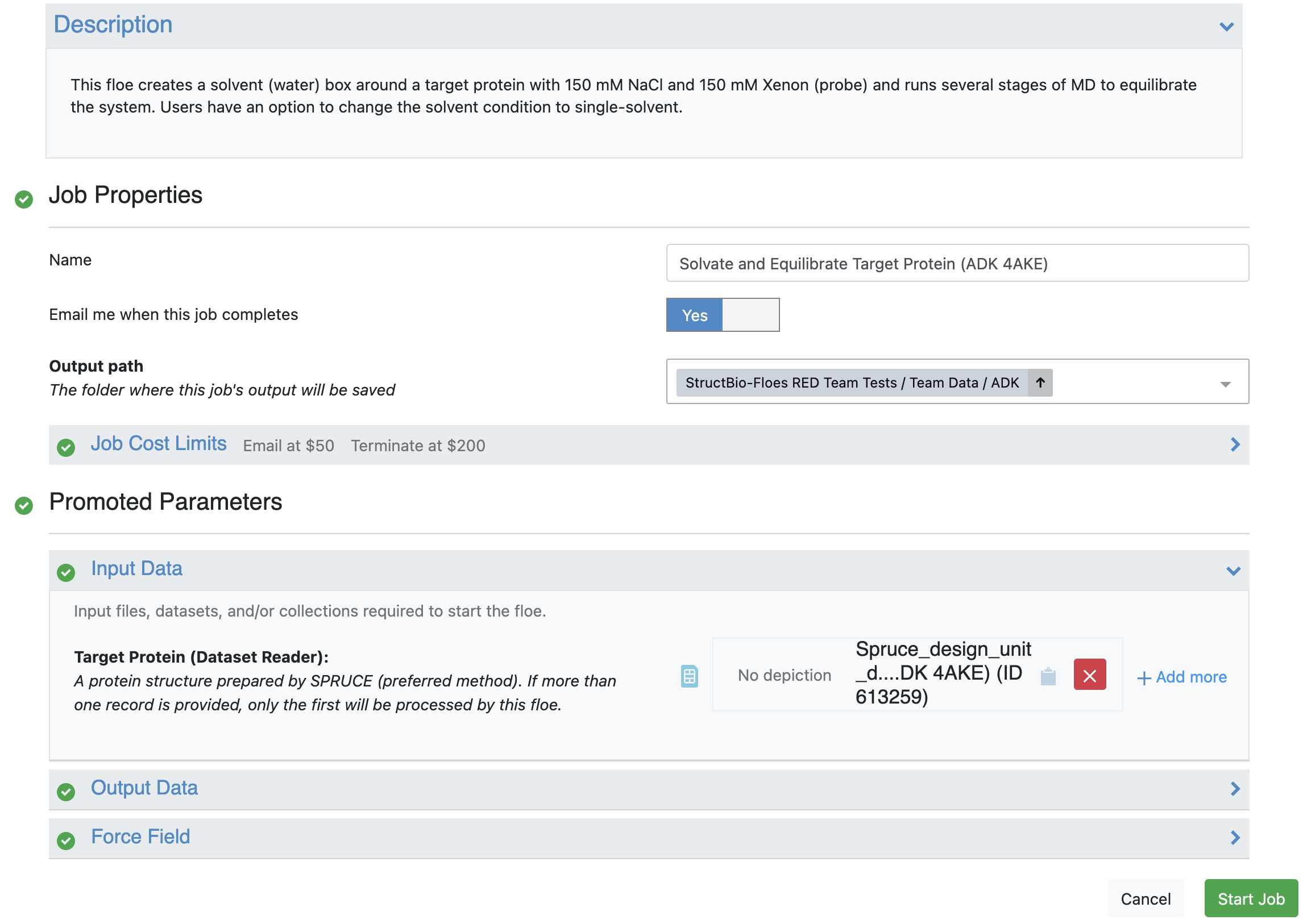 Enter the requisite parameters as shown in Figures 4 and 5 and click “Start Job” to begin the floe.