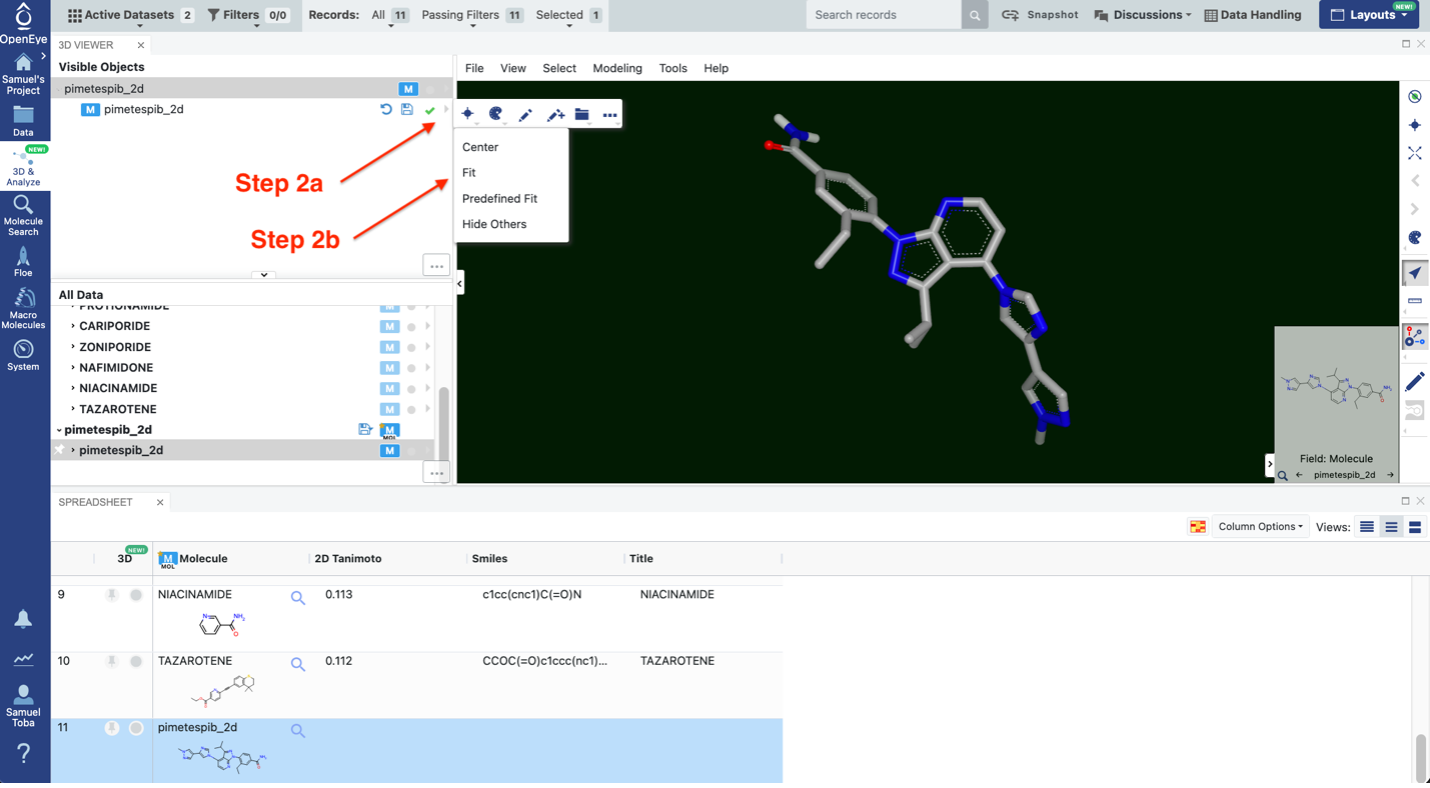 select the Fit button to center and zoom the molecule displayed on the screen (Step 2b).