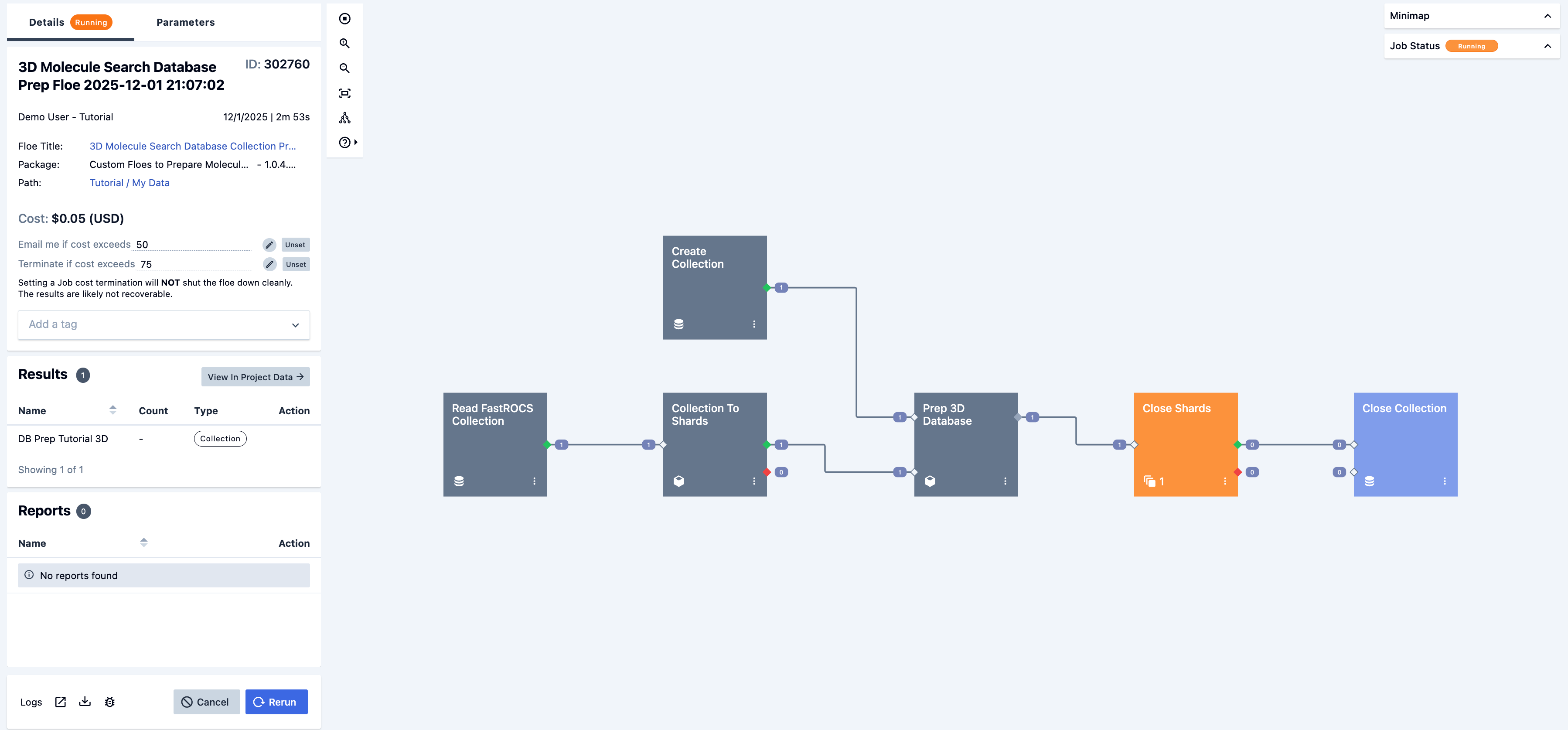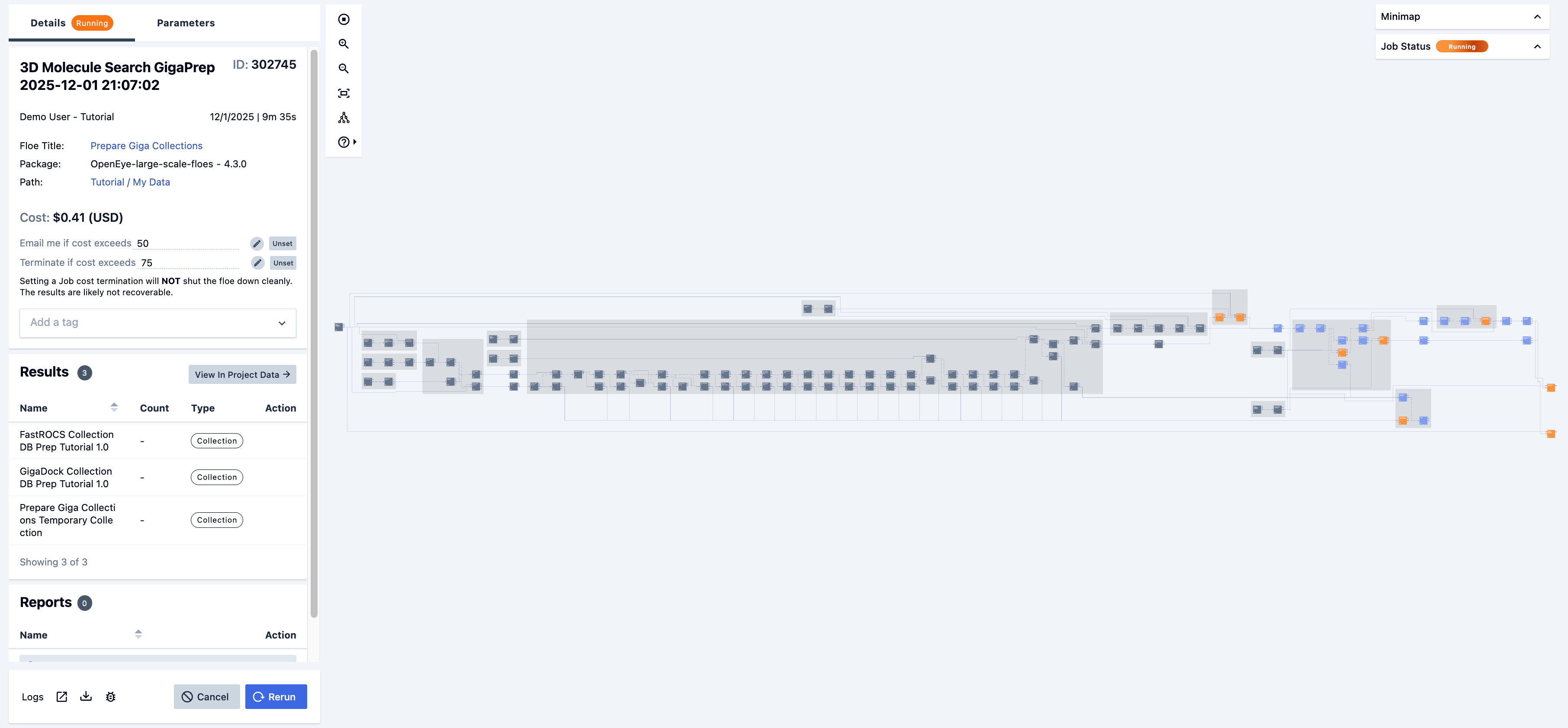 Figure 6. The running job for the 3D Molecule Search GigaPrep Floe.