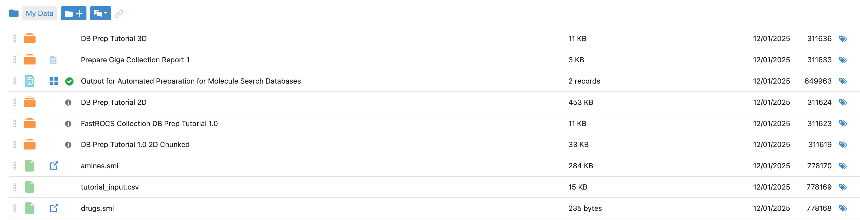 Figure 10. The list of databases created by the Automated Preparation for Molecule Search Databases Floe.