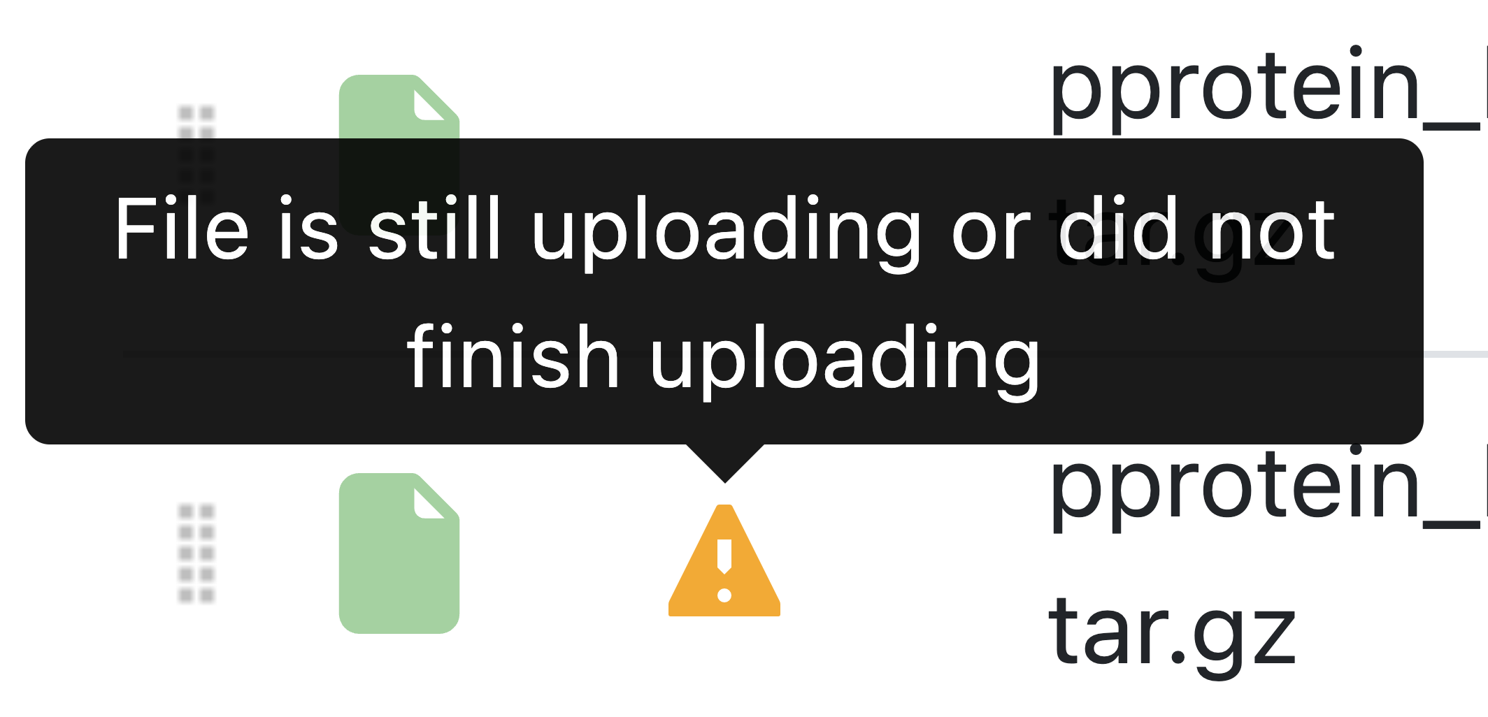 Figure 3. The yellow caution icon and warning message indicating an incomplete file upload.
